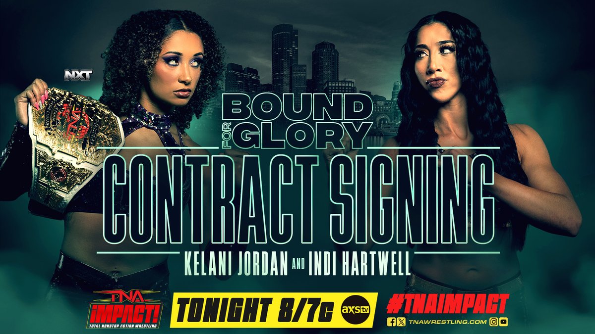 With the Knockouts World Title and brand pride on the line, @WWENXT’s @kelani_wwe and @indi_hartwell meet face-to-face for their official contract signing before they clash at #TNABoundForGlory?… pic.twitter.com/xySguV8LEp