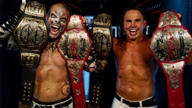 - Miz and Hardy had a sloppy spot at the end. Miscommunication. Hardy Boyz and Ambrose wins.
